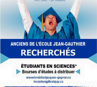 Nous distribuons des bourses d’études pour les élèves de l’École Jean-Gauthier au Québec qui s’engagent dans un programme terminal en sciences.